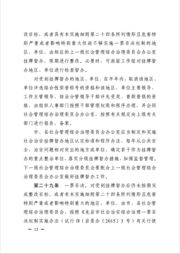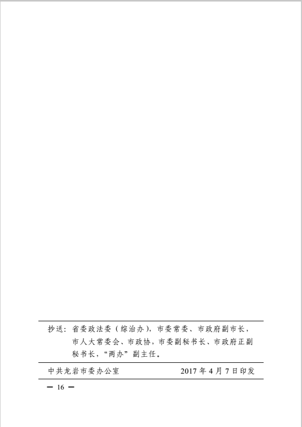 龍巖市健全落實社會治安綜合治理領(lǐng)導(dǎo)責(zé)任制實施細(xì)則(巖委辦發(fā)【2017】11號)