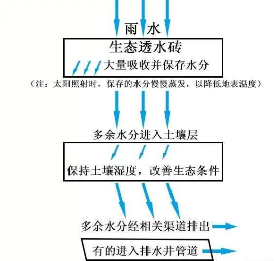 什么是海綿城市?簡言之,就是城市像海綿一樣有彈性,能吸水、蓄水、排水,實現(xiàn)水循環(huán)利用、有效防內(nèi)澇。鋪設(shè)生態(tài)透水磚,是除雨污分流改造外,我市海綿城市建設(shè)的一個重點和亮點。鋪有生態(tài)透水磚的人行道,看上去好像與鋪設(shè)普通磚的人行道沒什么兩樣,但仔細一看就會發(fā)現(xiàn)有所不同,生態(tài)透水磚表面布滿小孔,而普通磚表面比較光滑。這是因為生態(tài)透水磚以礦渣廢料、石屑、普通硅酸鹽水泥為主要原料,設(shè)計有一定孔隙率,經(jīng)高頻振動加壓而成,普通磚則主要用石粉廢渣、低標號水泥等制成下雨時,生態(tài)透水磚能大量吸收并保存水分,達到飽和狀態(tài)后保存不了的多余水分則透過磚體進入土壤層,從土壤層出來后的多余水分最后經(jīng)相關(guān)渠道排出,有的通過排水井管道排出。而普通磚只能吸收少量水分,大部分水經(jīng)由地表流掉,易導(dǎo)致路面積水。