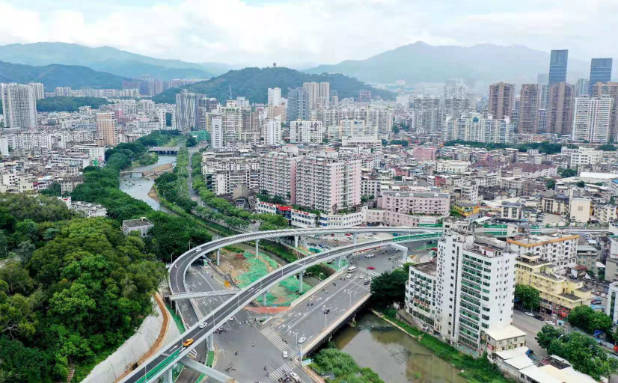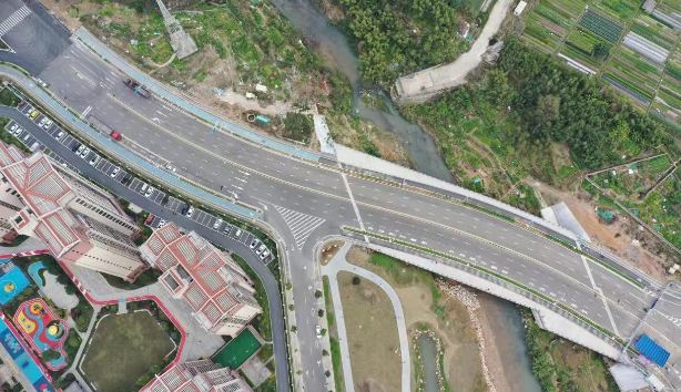 羅橋節(jié)點改造提升工程2019年11月開工建設,2021年8月建成通車。該項目沿北環(huán)西路、龍興路設置南北分離式雙向四車道高架,南側接龍興路,北側接現(xiàn)狀北環(huán)西路,高架靠東側布置(緊貼烈士陵園),橋梁總長約1140米,凈寬約7.7米;在雙洋路、龍川北路、北環(huán)西路設置人行天橋,與山體步道銜接,以完善慢行系統(tǒng);在烈士陵園山體下采用明挖回填方式設置框涵,長度約225米,凈寬10.75米工程投資1.4億元。