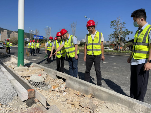 確保天馬西路二期在1015前順利通車(chē),市政集團(tuán)主要負(fù)責(zé)人帶領(lǐng)項(xiàng)目骨干和黨員先鋒隊(duì)員深入項(xiàng)目施工現(xiàn)場(chǎng)開(kāi)展通車(chē)前安全大檢查。