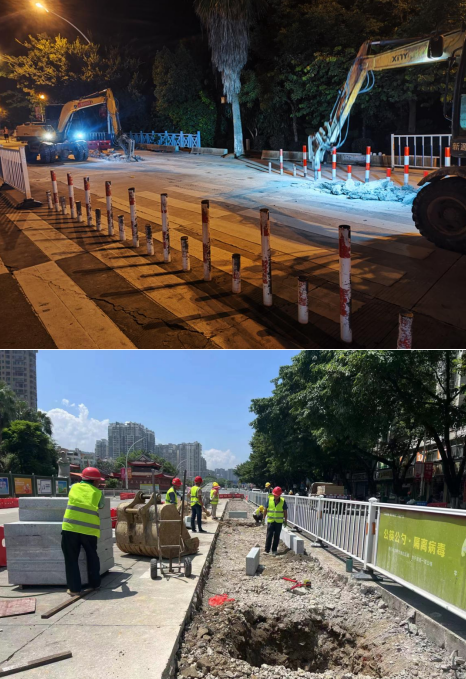 小溪路口地處老城區(qū)、蓮東片區(qū)、新城區(qū)交界處,群眾反映該路口交通標識不清、行人過街不便等,存在安全隱患,為此,市委、市政府及市住建局等相關(guān)部門高度重視,決定由市政集團所屬企業(yè)市城投公司對該路段實施提升改造,重點實施道路白改黑、雨污分流改造、綠化提升、道路標識完善、交通安全設(shè)施提升等建設(shè),項目總投資約3500萬元。工程于7月下旬開工建設(shè),目前正在進行混凝土病害處理、雨水管網(wǎng)開挖鋪設(shè)、路沿石安裝及各管線遷改等施工作業(yè)。